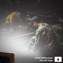 - 【HIGH LUMEN AND MULTI-MODE 】366LED lamp beads integrate 100W lighting intensity, lighting up to 10000 lumens; solar flood lights outdoor has 3000-6000K White/Warm/Warm White color lights with red blue shrinks SOS warning light.
