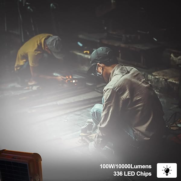 - 【USB PORT AND IP66 WATERPROOF】 100W led floodlight can be also used as a power bank when you need to charge your cell phone or tablet. It is suitable for outdoor camping, barbeque, power outage, emergency usage, hurricane and earthquake survival kit, etc. The rechargeable work light has silicone cover in charge port,IP66 waterproof level support it be used in rainy day, and protect the light from the daily water splash.