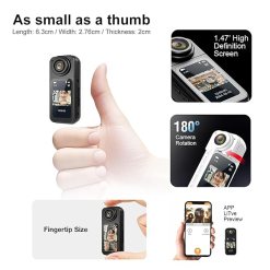 Small cameras breaking the volume limitation of traditional camera equipment, mini camera adopts ergonomic thumb shape design, the single unit size is only 65mm×25mm×28mm, and the weight is only 35.5g