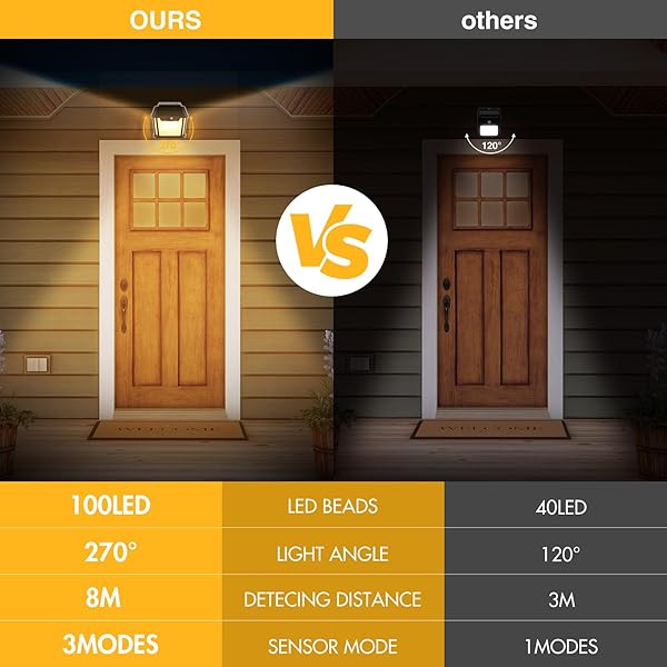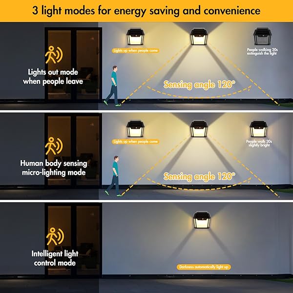 ✔ Equipped with 120° wide lighting angle, this solar wall lights can provide larger illumination coverage.