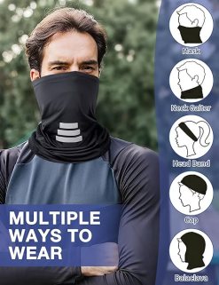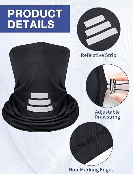 MELLIEX Multifunctional Neck Warmer with Drawstring, Elastic Breathable Neck Cover, Windproof Sun Protection Neck Warmer for Men Women Outdoor Cycling Motorcycle Racing, Black, 44*26cm