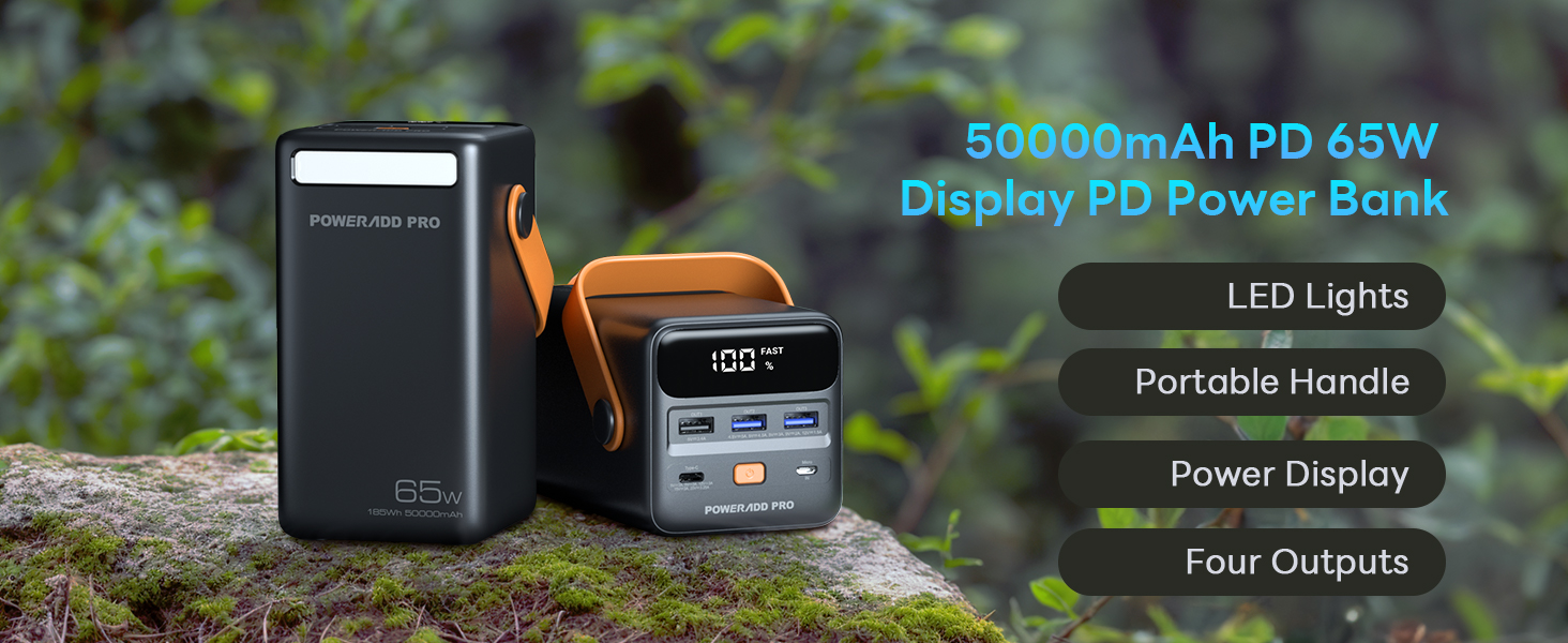POWERΛDD PRO 50000mAh Power Bank 65W Fast Charging USB-C Portable Charger with LED Display & Flashlight, 4 Outputs Battery Pack Compatible with Laptop, iPhone 17, Samsung, iPad, Dell, Tablets & More