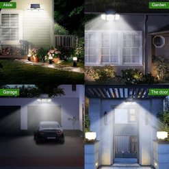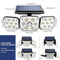 360° Adjustable 3 Heads with Accurate PIR Motion Sensor: The solar security light has 3 freely rotatable light heads, providing unusual light angles, you can easily point the lamp head in the desired direction and light up the place you need. Built-in a sensitive light sensor and PIR motion sensor, the sensor motion lights can pick up movement from a small dog/cat easily. After detection, the solar wall light will light 20-30s, cover a large scale of space with gradual illumination and will not scare your pets.
